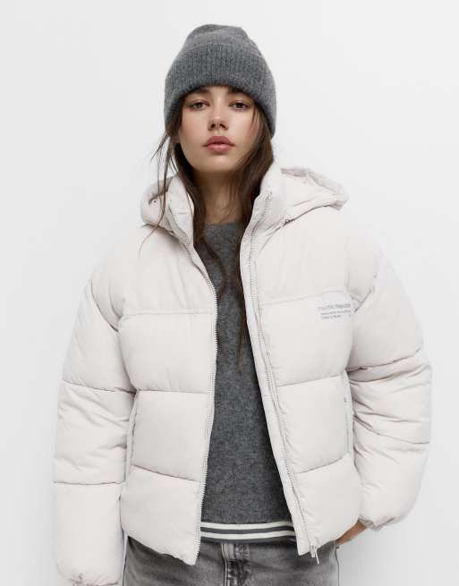 Pull&Bear – Stenfärgad pufferjacka med logga