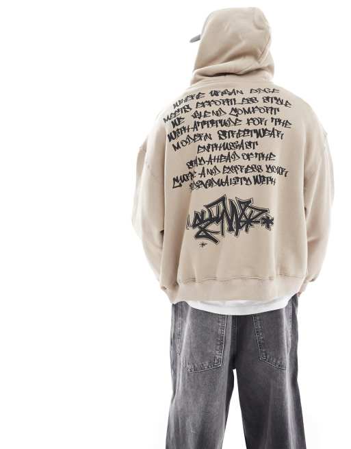 Pull&Bear – STWD – Beige huvtröja med gotiskt tryck