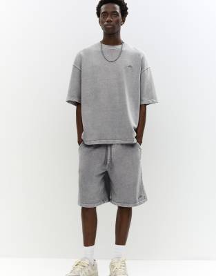 Pull&Bear – STWD – Grå, tvättade mjukisshorts i bermudastil