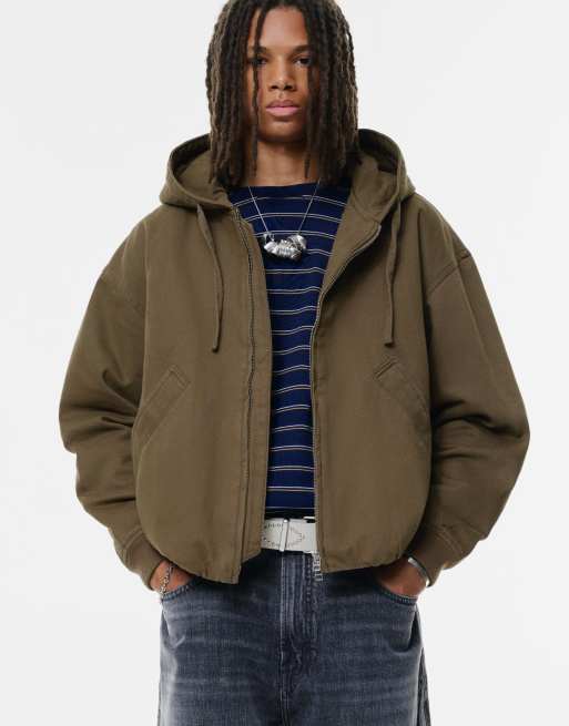 Pull&Bear – STWD – Sandfärgad bomberjacka med huva
