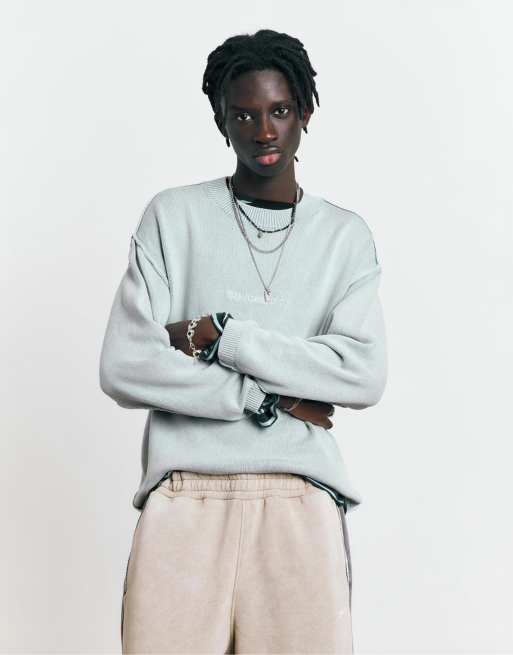 Pull&Bear – STWD Studio – Blekblå tröja med broderi
