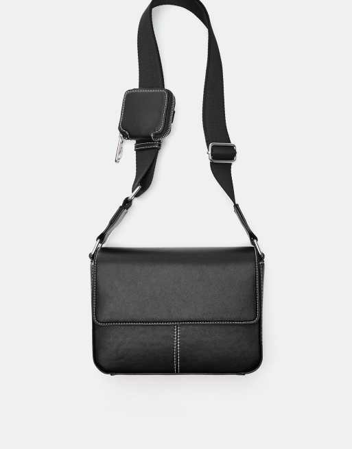 Pull&Bear – Svart axelremsväska med dekorativ söm