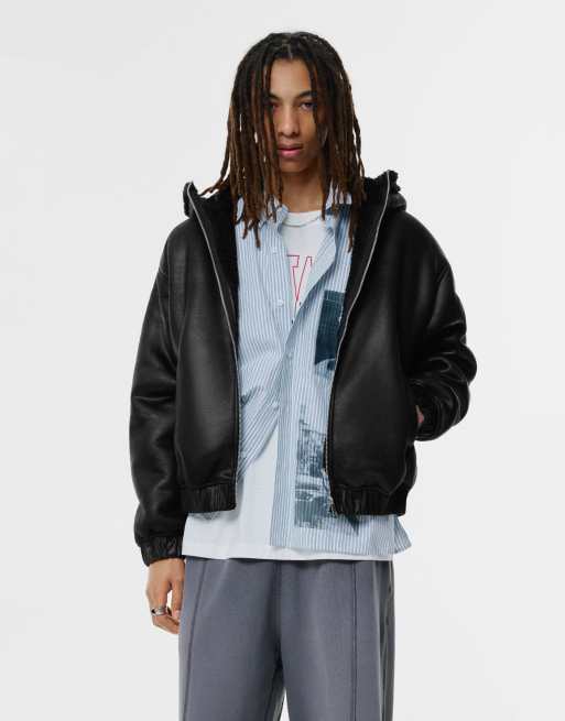Pull&Bear – Svart jacka i läderlook och fårskinnsimitation