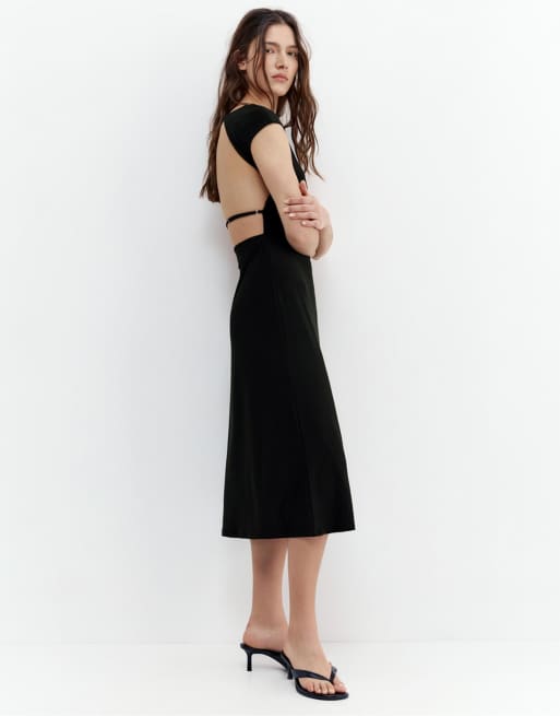 Pull&Bear – Svart midiklänning med korta ärmar