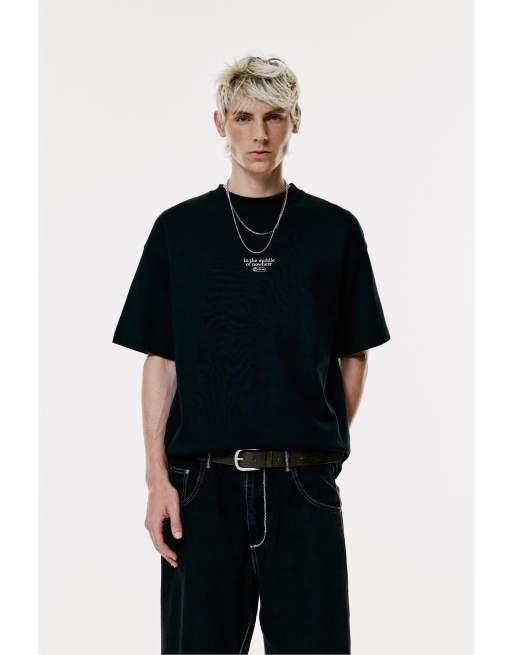 Pull&Bear – Svart sweatshirt med korta ärmar och boxig passform