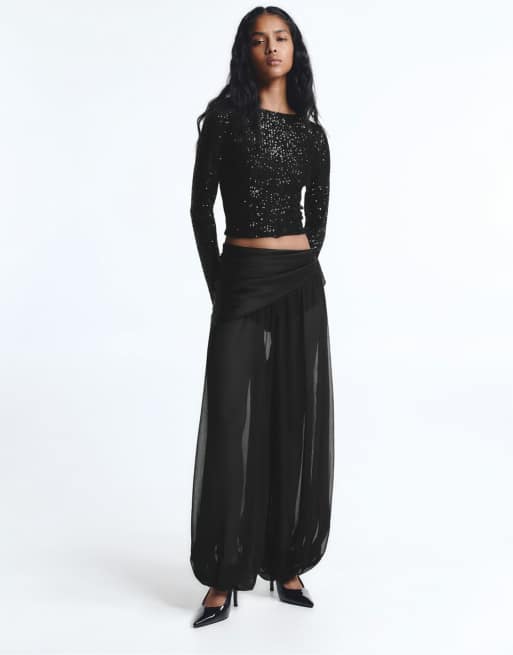 Pull&Bear – Svart topp med långa ärmar och paljetter