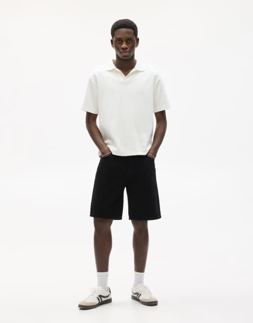 Pull&Bear – Svarta bermudashorts i denim med standard-passform