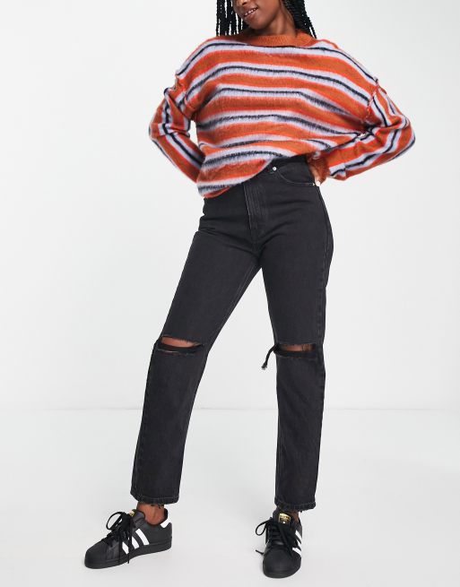 Pull&Bear – Svarta mom jeans med hög midja och revor
