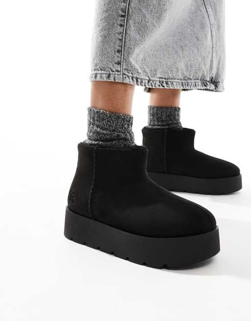 Pull&Bear – Svarta, mysiga ankelboots med platåsula