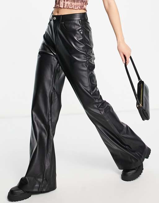 Pull&Bear – Svarta vida byxor i läderimitation