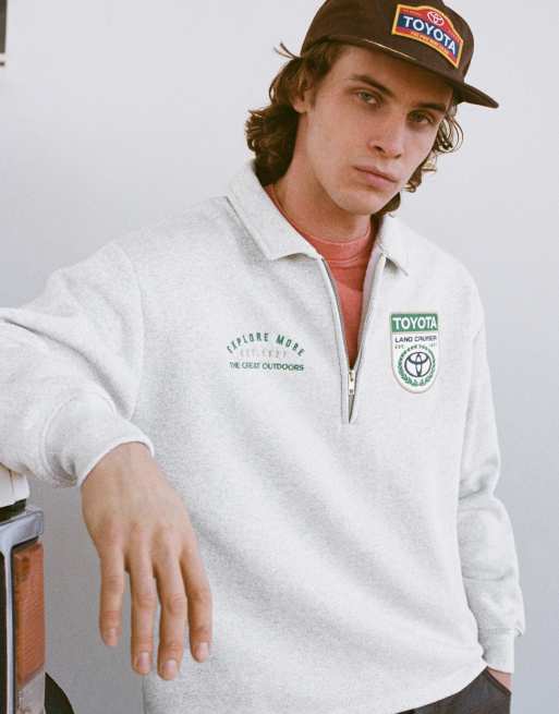 Pull&Bear – Toyota – Gråmelerad sweatshirt med kort dragkedja