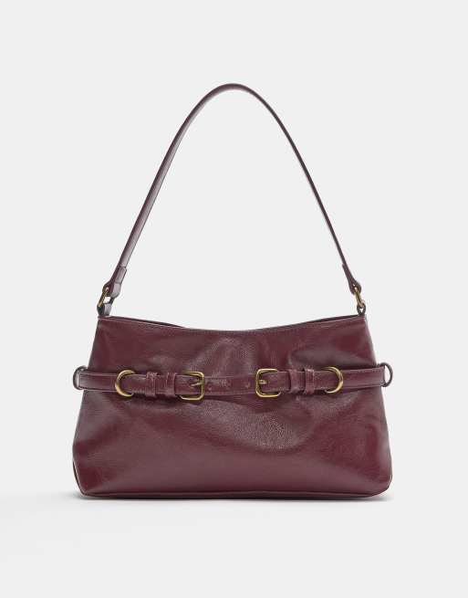 Pull&Bear – Vinröd axelväska med spännen