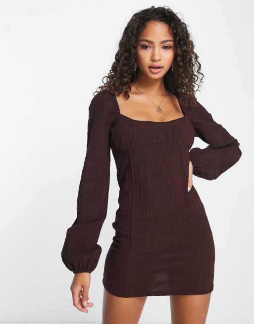 Pull&Bear – Vinröd miniklänning med fyrkantig ringning och puffärmar