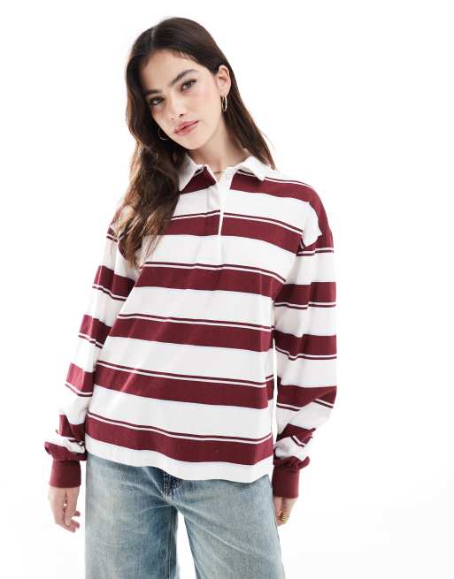 Pull&Bear – Vinröd och vitrandig rugbytopp