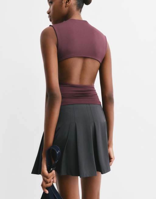 Pull&Bear – Vinröd topp i polyamid med öppen rygg