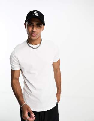 Pull&Bear – Vit t-shirt i muscle fit