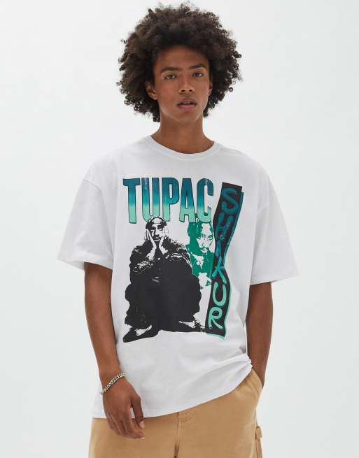 Pull&Bear – Vit t-shirt med Tupac-tryck
