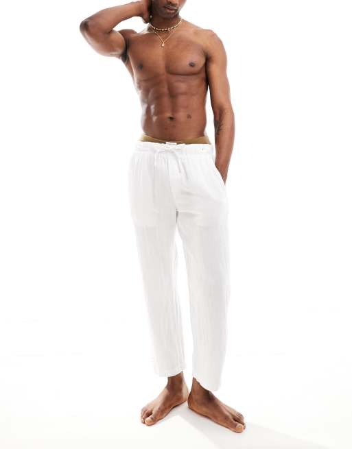 Pull&Bear – Vita byxor i 100% linne