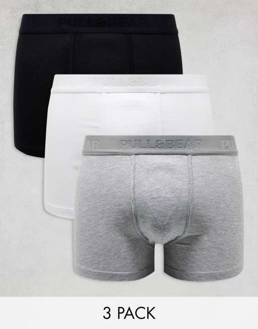 Pull&Bear – Vita, grå och svarta boxershorts, 3-pack