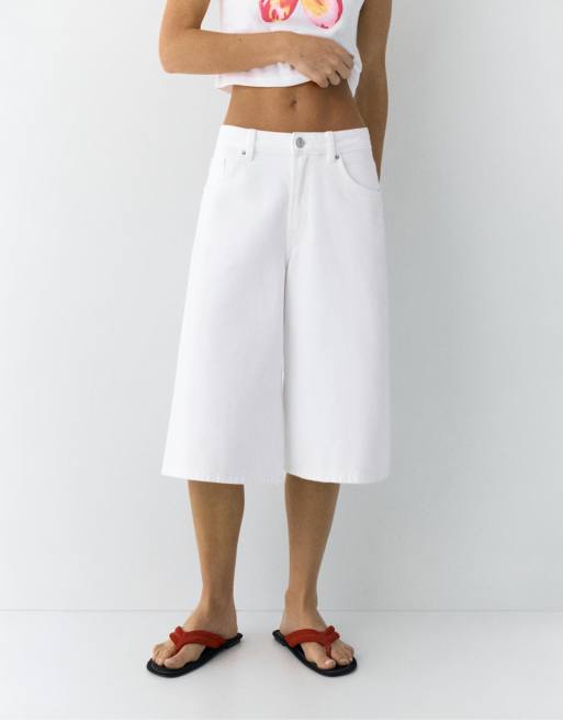 Pull&Bear – Vita, långa shorts med låg midja