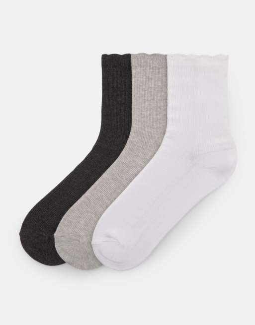 Pull&Bear – Vita strumpor med uddkant, 3-pack