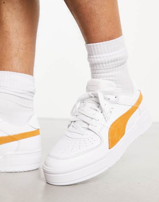 PUMA – CA Pro – Vita sneakers i mocka med gula detaljer