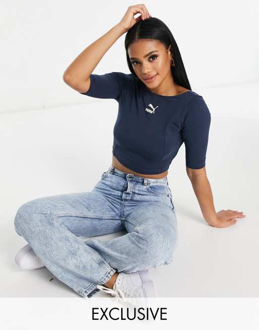 Puma – Classics – Mörkblå crop top med korta ärmar – Endast hos ASOS