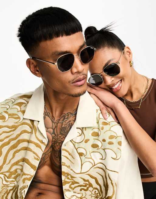 Quay – Big Time – Guldfärgade, runda solglasögon med polariserade glas