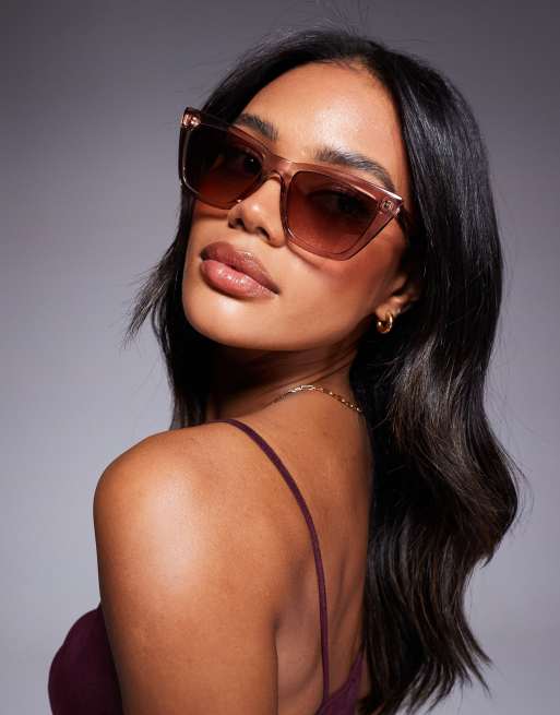 Quay – Call The Shorts – Rosa, genomskinliga solglasögon i cateye-modell med sepiabruna glas