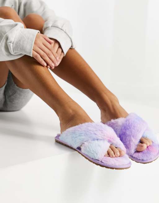 Qupid – Batikmönstrade fluffiga innetofflor med korsade band