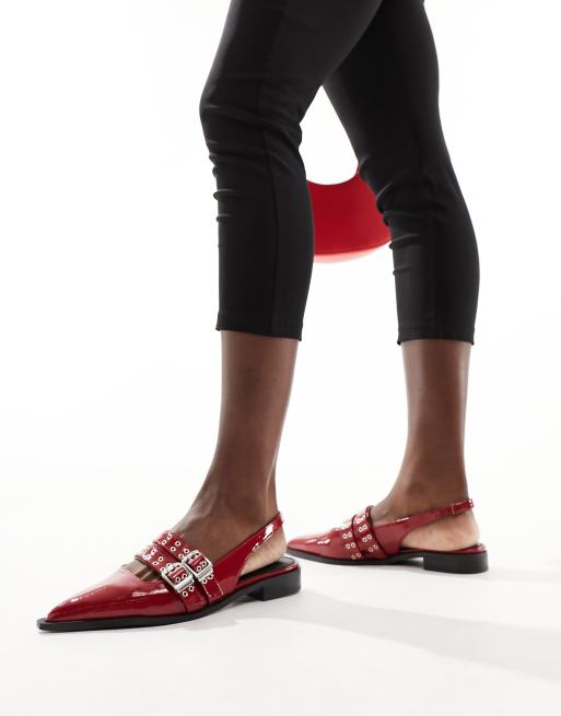 RAID – Ichika – Röda, lackade, platta skor med spännen och hälrem