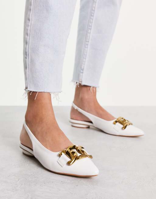 RAID – Vita, platta skor med guldfärgade spännen