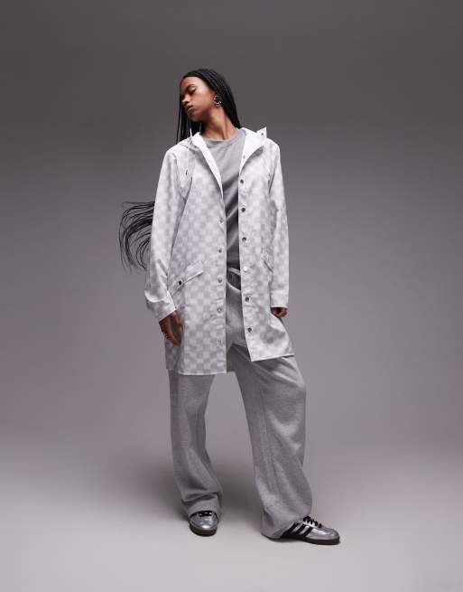Rains – 12020 – Ljust schackrutig, vattentät jacka i lång modell