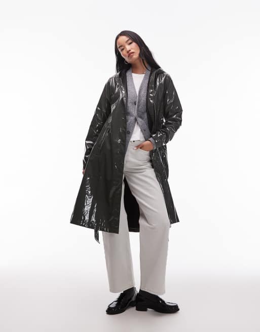 Rains – 12040 – Grön, glansig, vattentät, a-linjeformad jacka med skärp