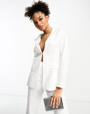 Rare London – Vit kostym med strassutsmyckad kavaj och byxor