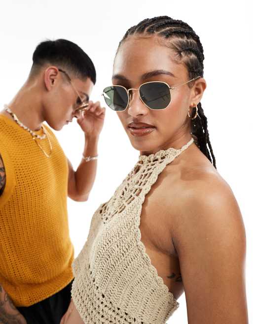 Ray-ban – Guldfärgade kantiga solglasögon