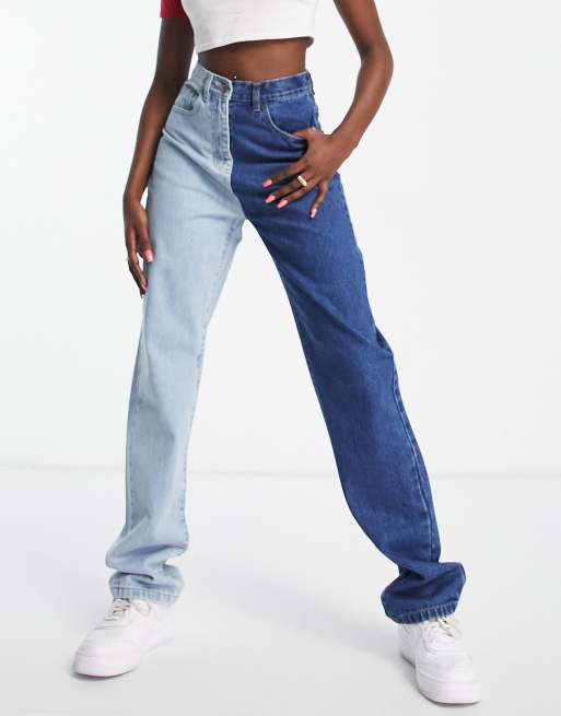 Rebellious Fashion – Blå raka jeans kluvna i två toner