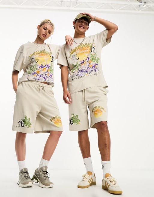 Reclaimed Vintage – Unisex – Blurred Vision – Beige set med t-shirt och shorts
