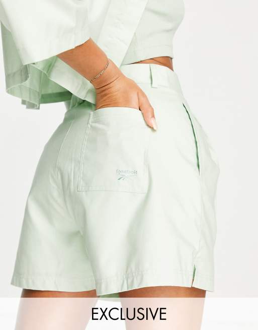 Reebok – Mintgröna figursydda shorts med hög midja, endast hos ASOS