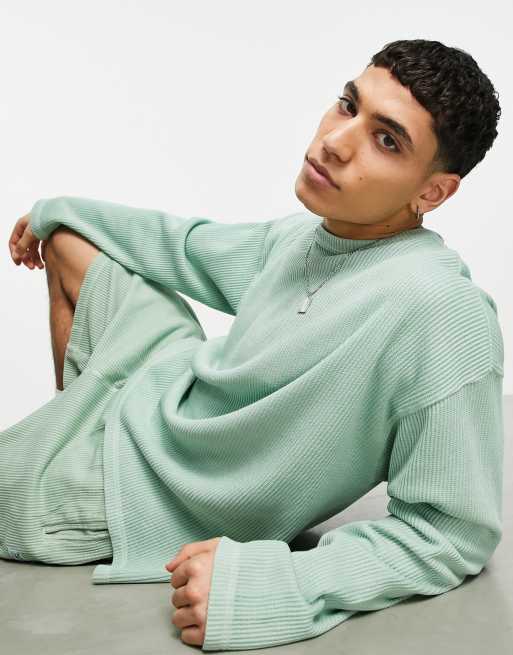 Reebok – Salviagrön, långärmad topp med våffeltextur – LGREEN
