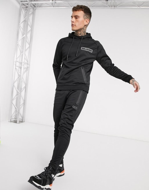 Religion – Svart träningsoverall i bomullspolyester med gummilogga