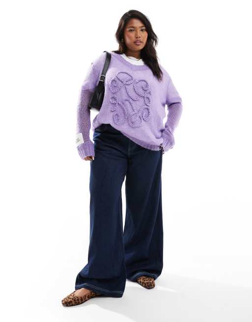 Renee Studio x Holly Wynne – Plusstorlek – Exklusivt – Lila tröja med v-ringning, vida ärmar och applicerad logga