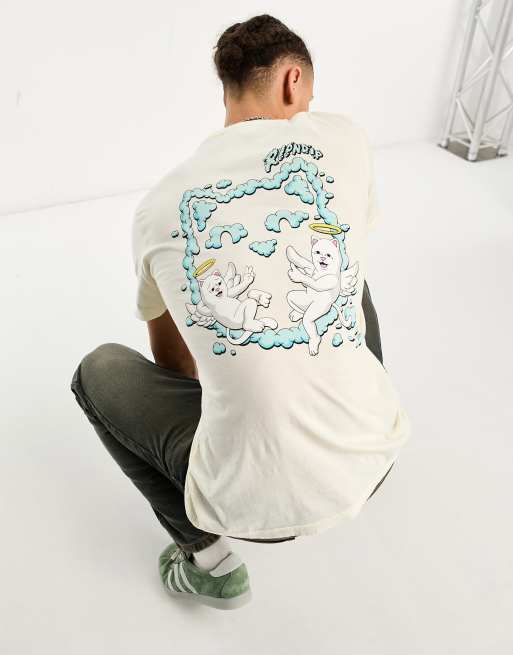 RIPNDIP – In The Clouds – Naturvit t-shirt med tryck på bröst och rygg
