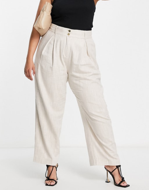 River Island Plus – Ljusbeige kostym med kavaj & byxor med vida ben