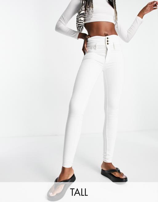 River Island Tall – Vita skinny jeans med hög midja och knäppning framtill