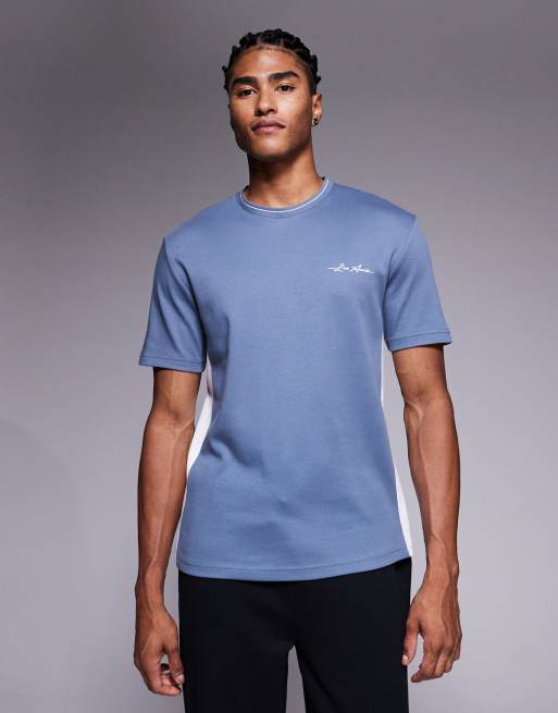 River Island – Blå t-shirt med kontrasterande kantband