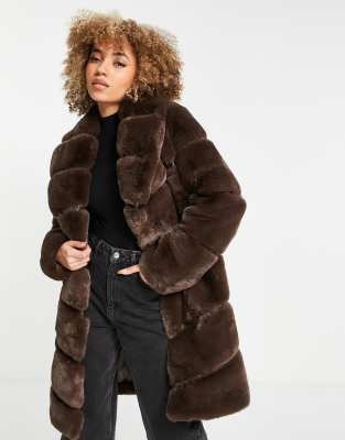River Island – Brun oversize kappa i fuskpäls och lång modell