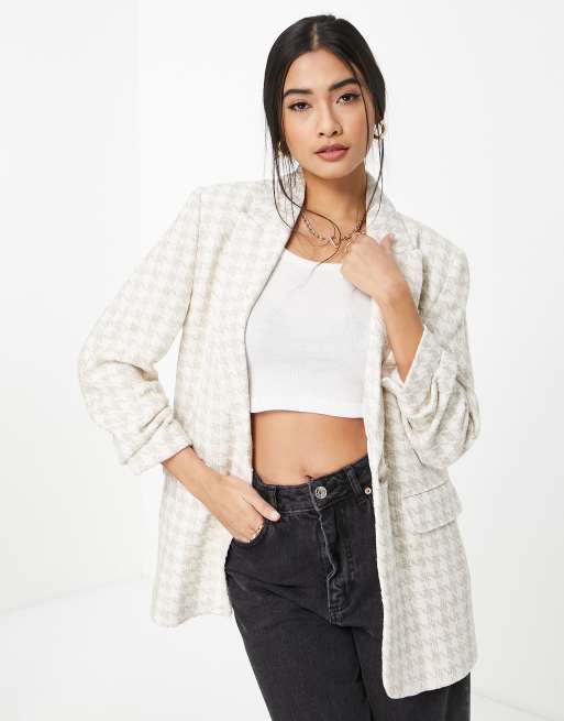 River Island – Gräddvit, hundtandsmönstrad kavaj i dad-modell