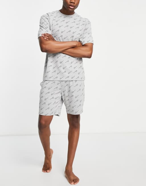 River Island – Grått set med skriftmönster med t-shirt och shorts