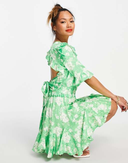 River Island – Grön jacquardblommig topp med bar rygg, del av set